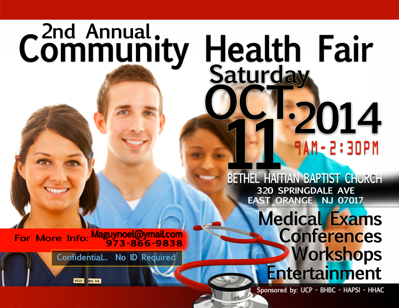 1.Tan pronto su feria de la salud, este aprobada , por ambas organizaciones, por favor publique un flyer tipo, o volante, busque ese dinero aunque se de su bolsillo, tipo: Save The Date..o reserve la fecha.