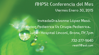 AHPSI: Asociacion Hispana de Profesionales de la Salud, Inc NY, Viernes, 30 de Enero, 2015, 7pm, Primera conferencia del 2015…