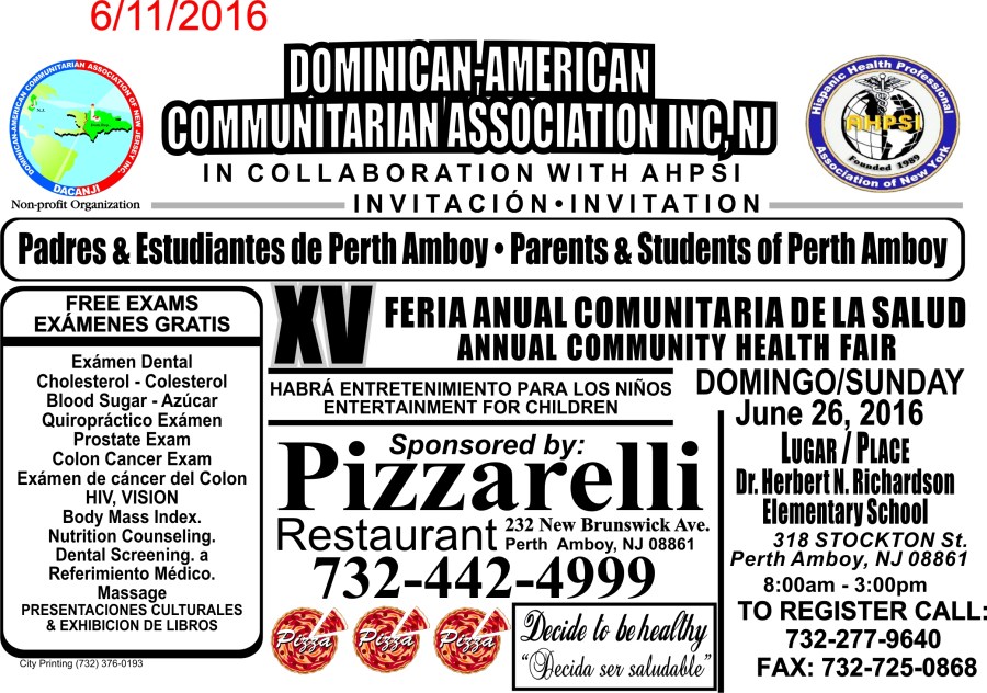 Perth Amboy -Dacanji, reconocimientos especiales, feria de la salud, 2016