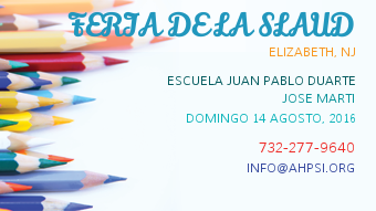 □ Sunday, August, 14, 2016, VI Annual Community Health Fair, NO 28, Jose Marti & Juan Pablo Duarte, School, 25 First St, Elizabeth, NJ, 07206, time 10am-4pm