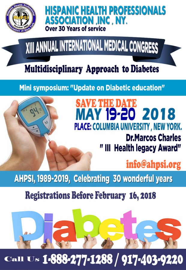 AHPSI,Congreso medico dedicado a al Diabetes, Oportunidad de exponer posters.