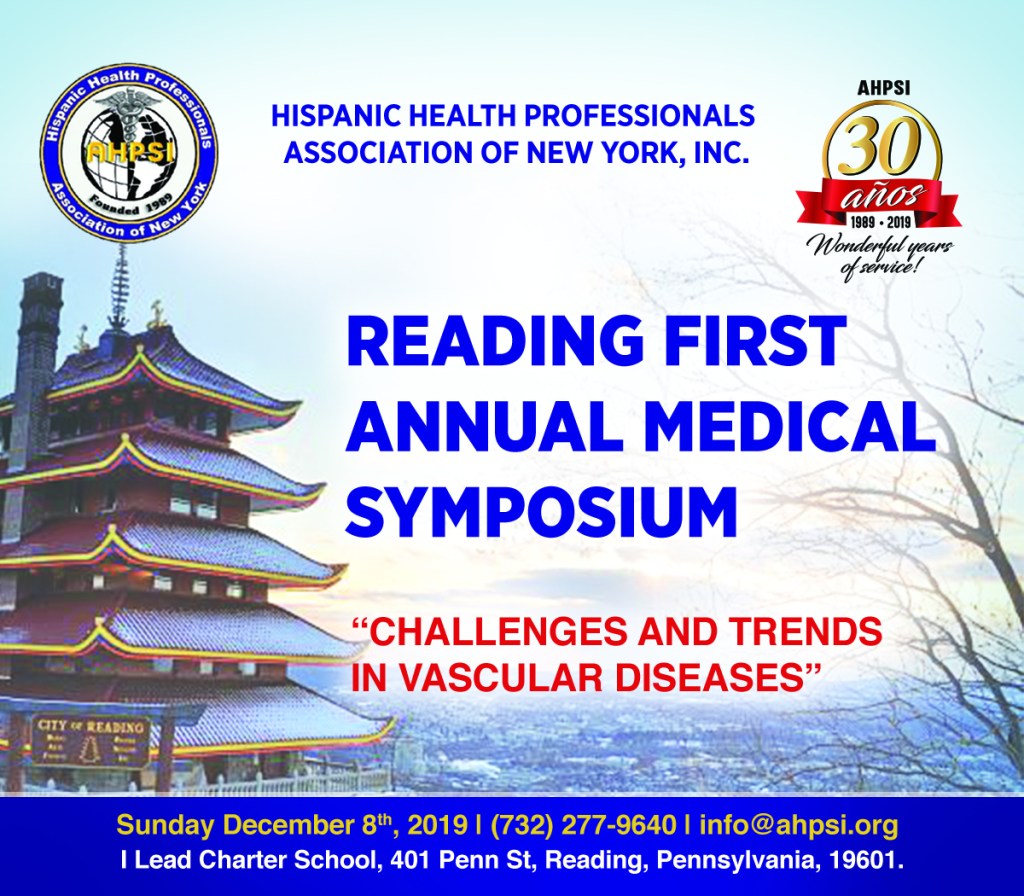 Our organization Ahpsi, Hispanic Association of Health Professionals, Inc. NY, proudly announces the recipients of Reading Annual medical Symposium, «Ahpsi legacy 30 anniversary award», these great professionals are recognized for your academic advances, for their support to our organization and especially for your commitment and dedication to our community, in decades, the recognition ceremony It will be Saturday, December 7, 2019, at 7pm, local I lead Charter school, located at 401 Penn St, Reading Pennsylvania.