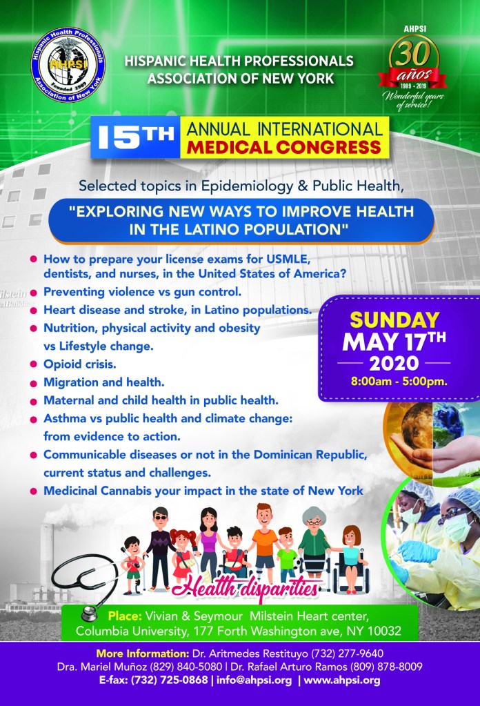 AHPSI,Asociacion Hispana de Profesionales de la salud, Over 30 Years of services, invita a sus miembros , profesionales de la salud, y la comunidad en general, a nuestra Reunión conferencia médica del mes, free, libre de costo, Viernes ,28 Febrero, , de 2020, Hora 7pm, Lugar: Vivian and Seymour Milstein Heart Center, Columbia University, del 177 forth Washington Ave, New York, NY. Room New York Tren A Parada 168th St, Libre de costo. Profesionales de la salud & nuevos miembros welcome!!, Invitados