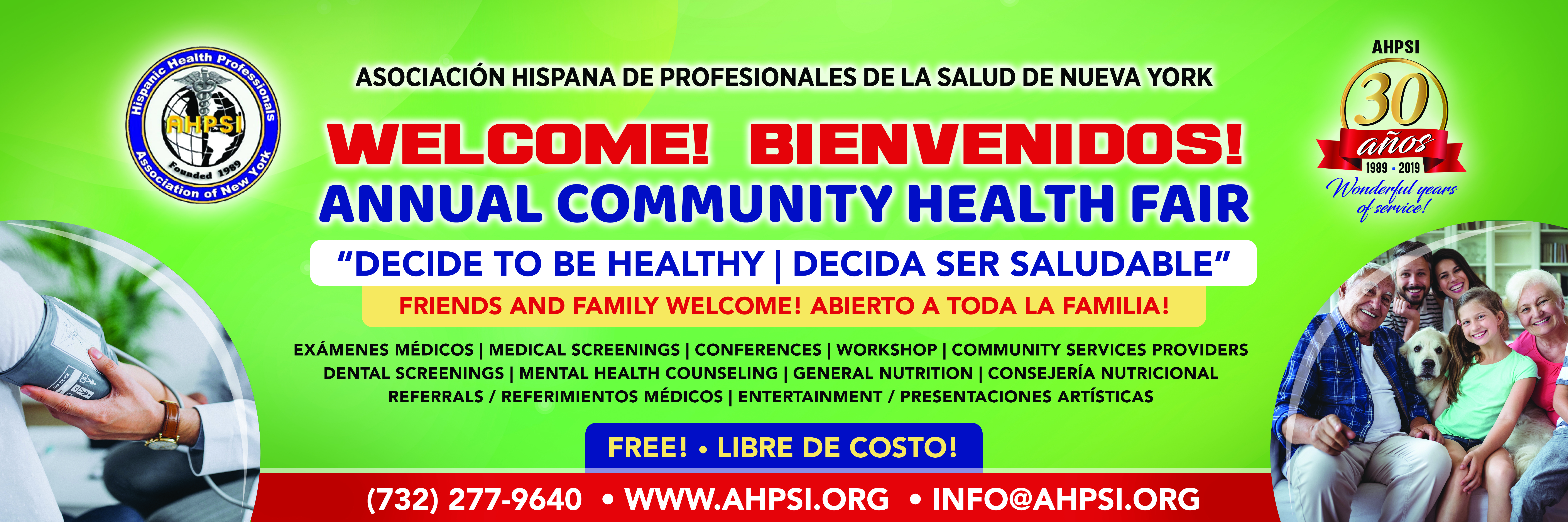 Invitamos a nuestros miembros y toda la comunidad a participar en la V feria anual de la salud, «Decide to be health», esta Domingo 8 de agosto, Lugar plaza las americas ,ubicado en el 651n west 175th st, en la plaza ,esquina Broadway, New York, hora 10am-4pm., libre de costo