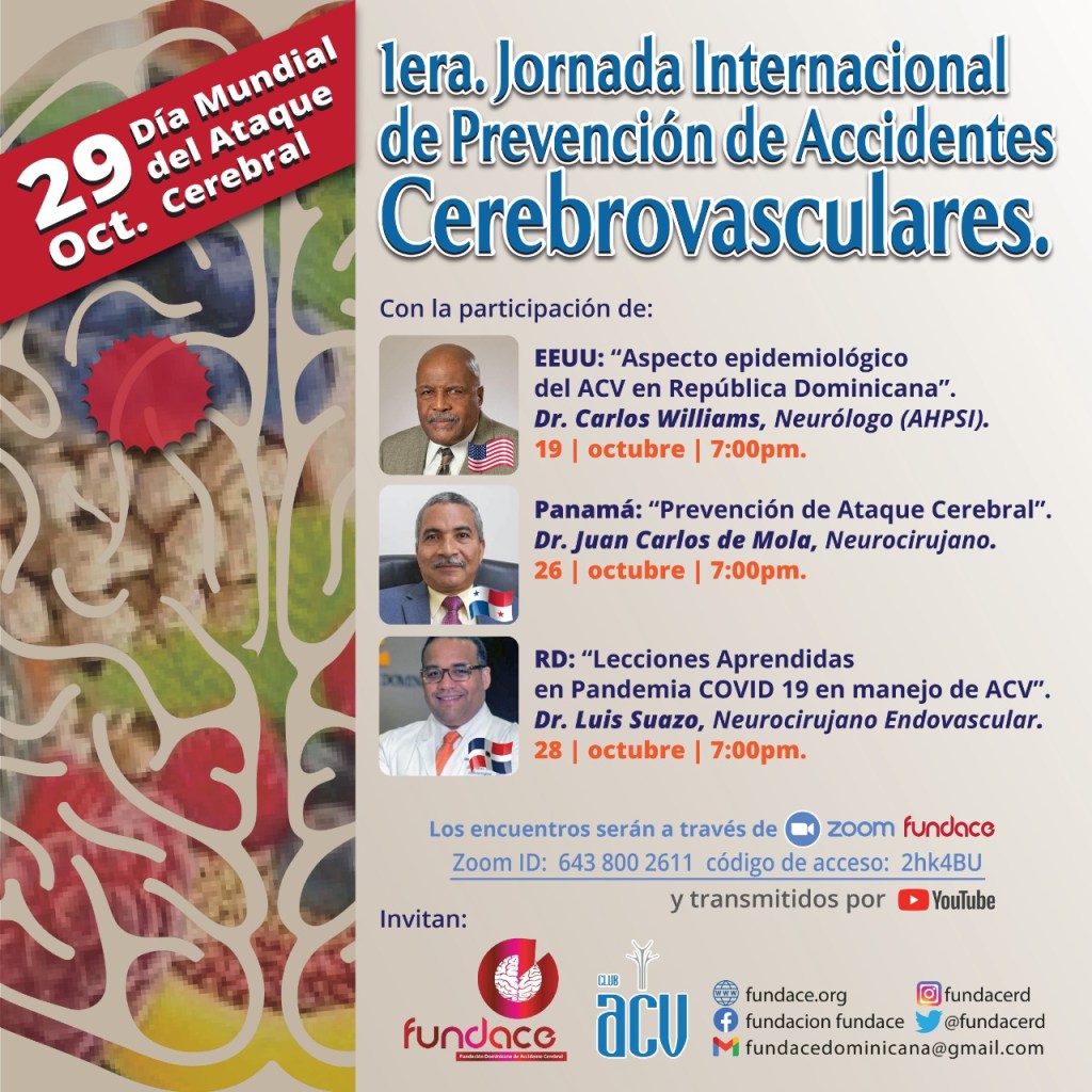 Nuesrtro agradecimiento a la Fundacion de accidente cerebral de la Republica Dominicana, fundada y dirigida por el abogado Lic.feliz Vinicio Lora, con la cual nuestra organizacion tiene acuerdo de colaboracion, , gracias por incluir al Dr.Carlos Williams, nuestro chairman, en esta serie de conferencia, el cual esta dedicada a traer tema de actualizacion en la prevencion de los Accidentes cerebrovasculares el cual es la segunda cus de muerte en REP-DOM,, y la primera causa de invalidez