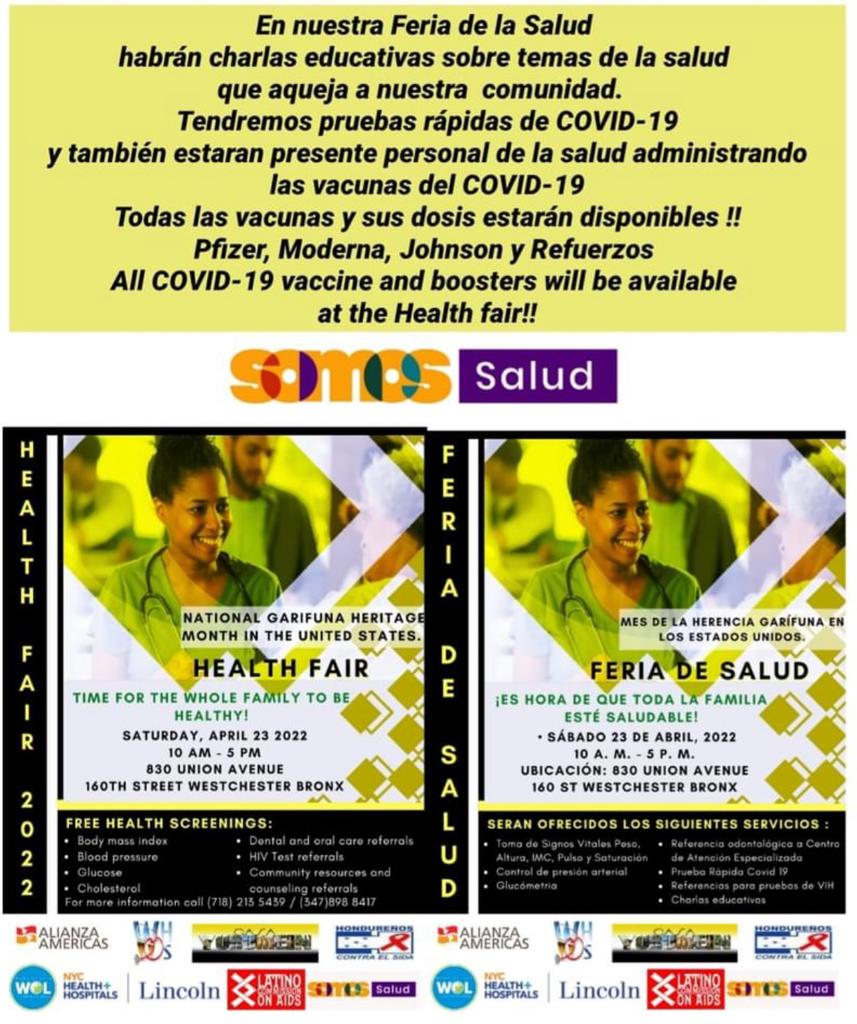 Sábado 23 de abril de 2022, panel invitados:Dr.Ovelio Lopez, Dra.Carmen Rodriguez,Dr.Aritmedes restituyo. Dr.Mario Longo,Congresista Ritchie Torres,Líderes de la comunidad Garífuna.