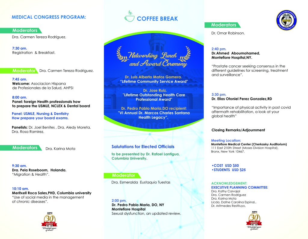 Bienvenidos a nuestro blog de la Asociación Hispana de Profesionales de la Salud fundada en el año 1989 en Nueva York, la cuál ofrece servicios a nuestros inmigrantes profesionales de la salud. Médicos, enfermeras, odontólogos, psicólogos, trabajadores sociales, veterinarios y estudiantes en el área de la salud residentes en la zona de Nueva York y New Jersey ,Pennsyvania, Conneticut, MA, entre otros estados. puede visitra nuestra pagina web :www.ahpsi.org