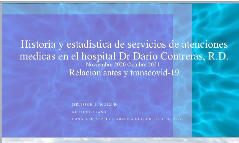 Invitado Dr.Jose Ruiz Ramirez, «Historia y estadística de servicios de atenciones médicas en el hospital Dr.Dario Contreras, Republica dominicana»,Domingo 30 de Octubre.