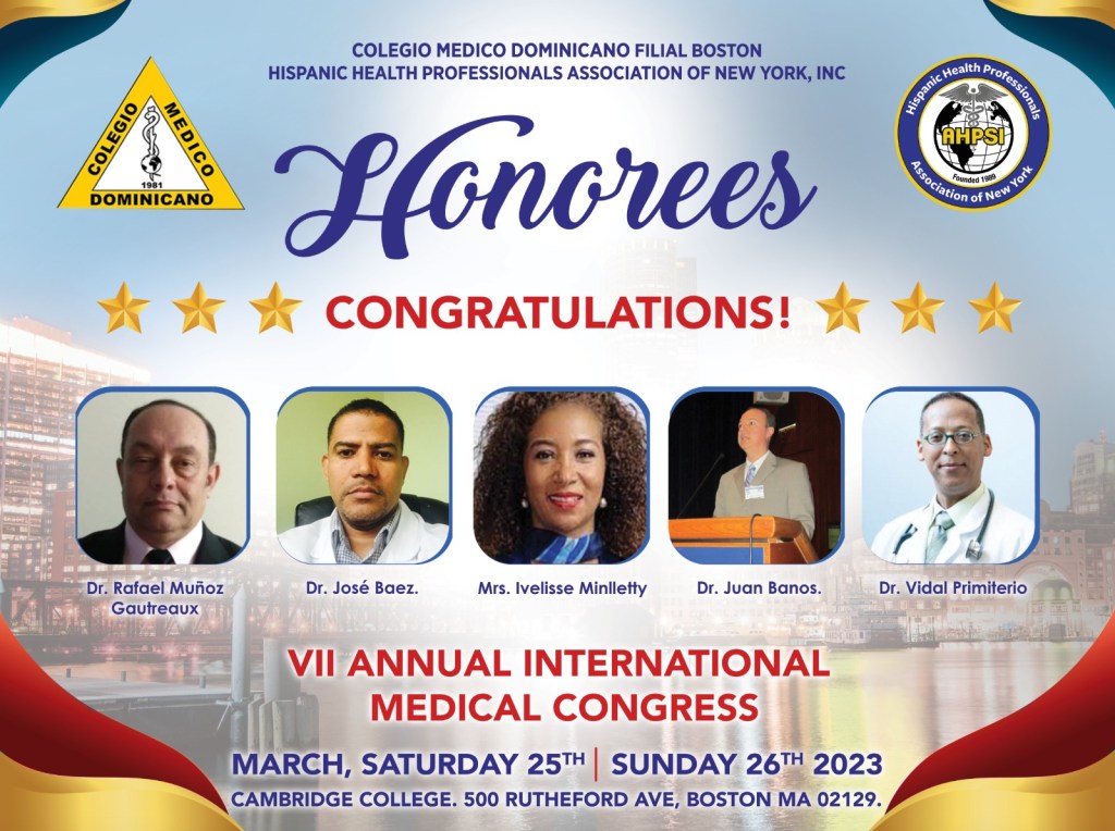 Dr.vidal, a physician with more than 30 years of practice in his career, a dedicated professional, members of several community organizations, awarded by several local institutions of the state of massachusetts, with a successful practice which exceeds more than 6000 patients, will be recognized, as a Lifetime Professional Achievement Award by the Dominican Medical College, in Boston, for our institution it is an honor and privilege, to recognize this Saturday, March 25, 2023, within the welcome reception of our VII medical congress,
