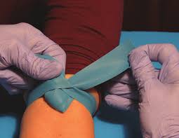 1.Select the appropriate tourniquet. Choose a tourniquet that is made of a material that is easily sanitized, such as latex-free rubber, and is not too tight for the patient’s arm.