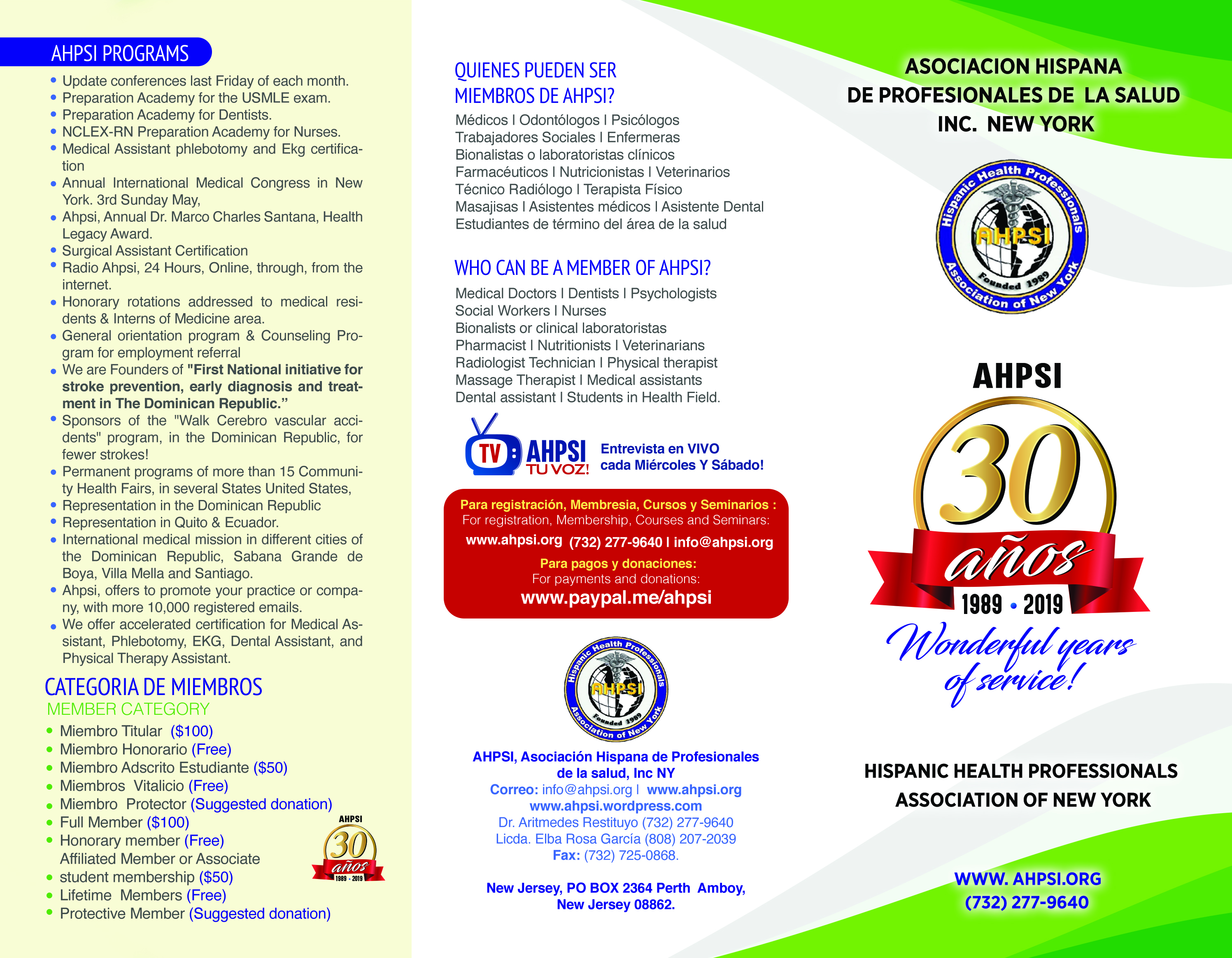 Con gran entusiasmo y admiración, les extendemos una cálida invitación para unirse a la Asociación Hispana de Profesionales de la Salud, Inc. NY (AHPSI). Como médicos, enfermeras, odontólogos, psicólogos, laboratoristas, trabajadores sociales y terapeutas físicos, sabemos que cada día enfrentan desafíos inmensos y realizan contribuciones invaluables a la comunidad.