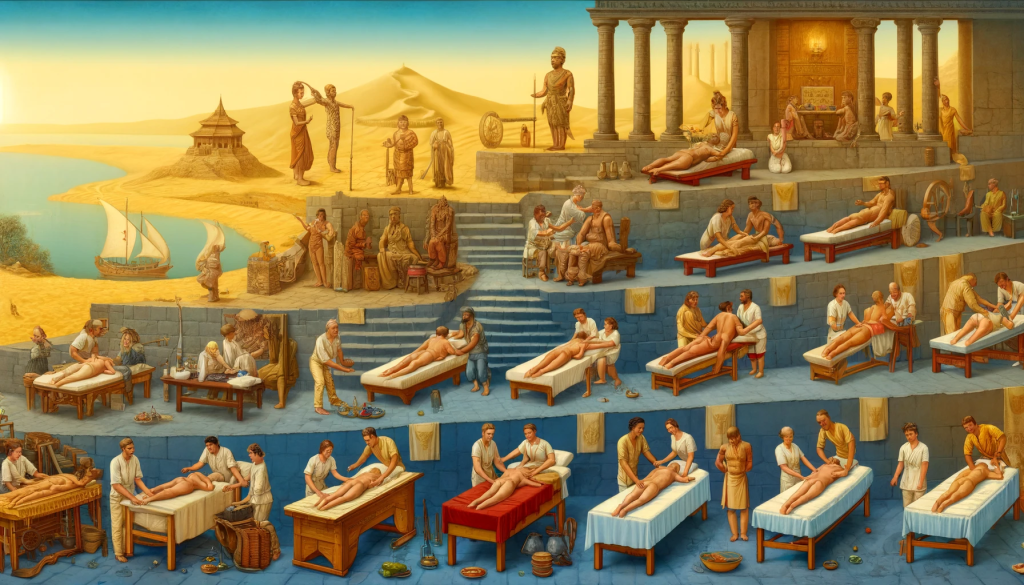 El masaje es una de las formas más antiguas de terapia utilizada por la humanidad. Sus raíces se remontan a civilizaciones antiguas como China, India, Egipto y Grecia, donde se empleaba tanto para fines curativos como relajantes. En la antigua China, los textos médicos de hace más de 4,000 años describían técnicas de masaje como parte integral de la medicina tradicional. En Grecia, Hipócrates, el padre de la medicina, abogaba por el uso del masaje para tratar diversas dolencias.