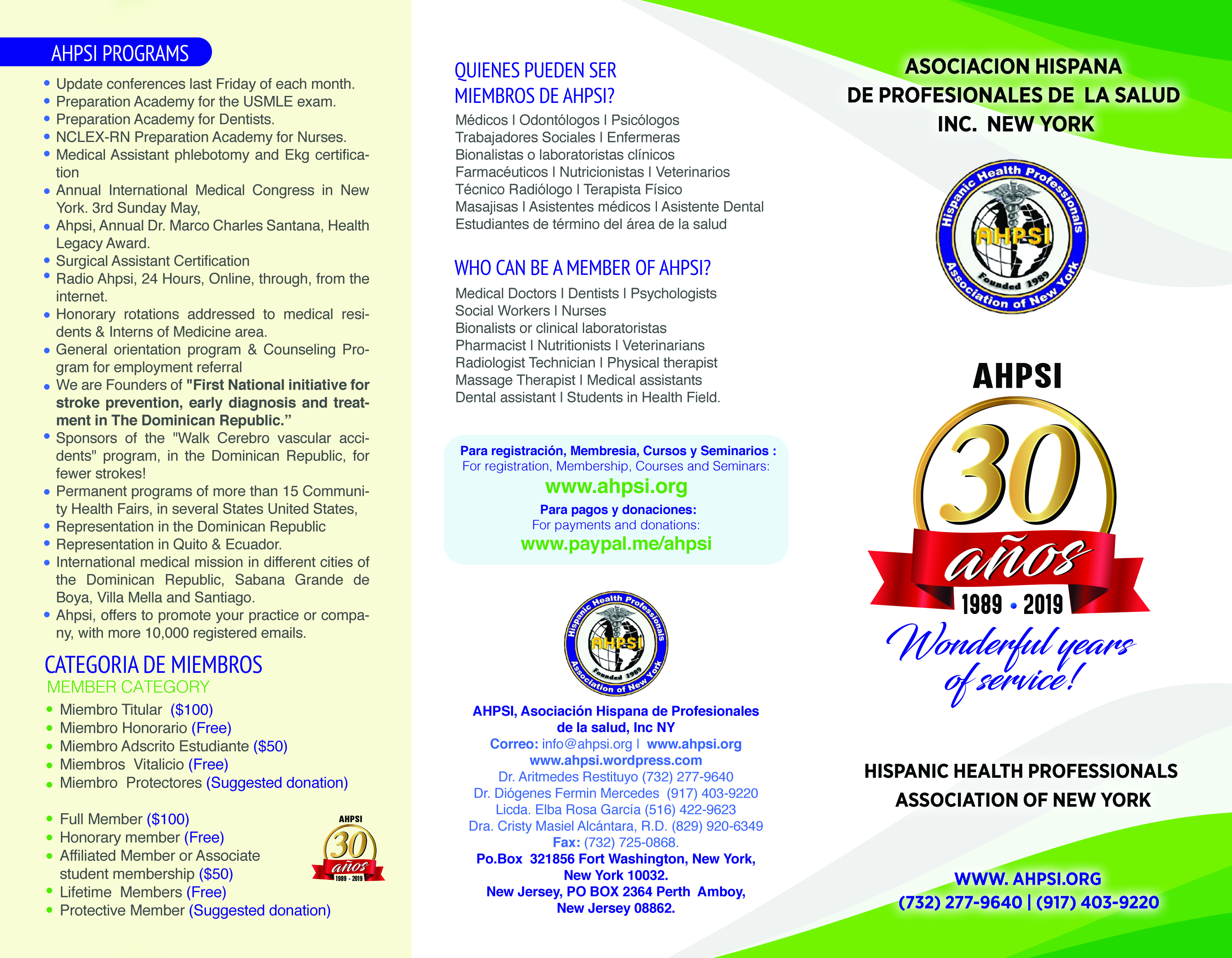 ¡Bienvenidos a AHPSI, la Asociación Hispana de Profesionales de la Salud, Inc. NY, con más de 35 años de servicio y compromiso!