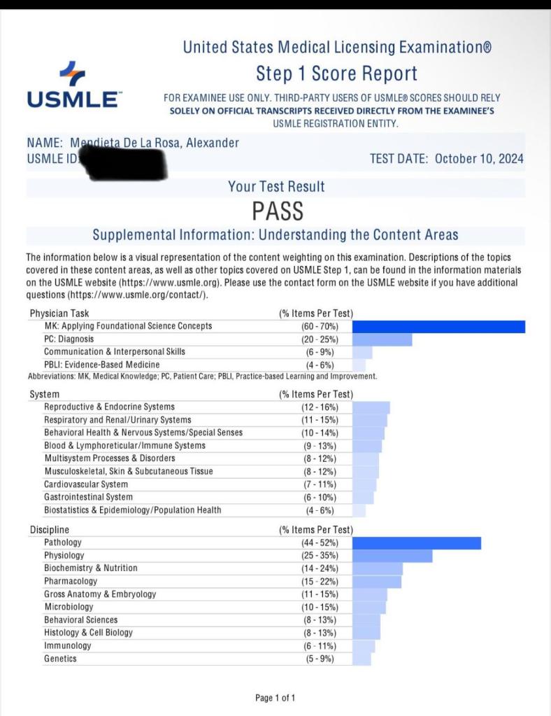 Dr. Alexander Mendieta: ¡Un Paso Más Cerca de Su Sueño con el USMLE 1 Aprobado!