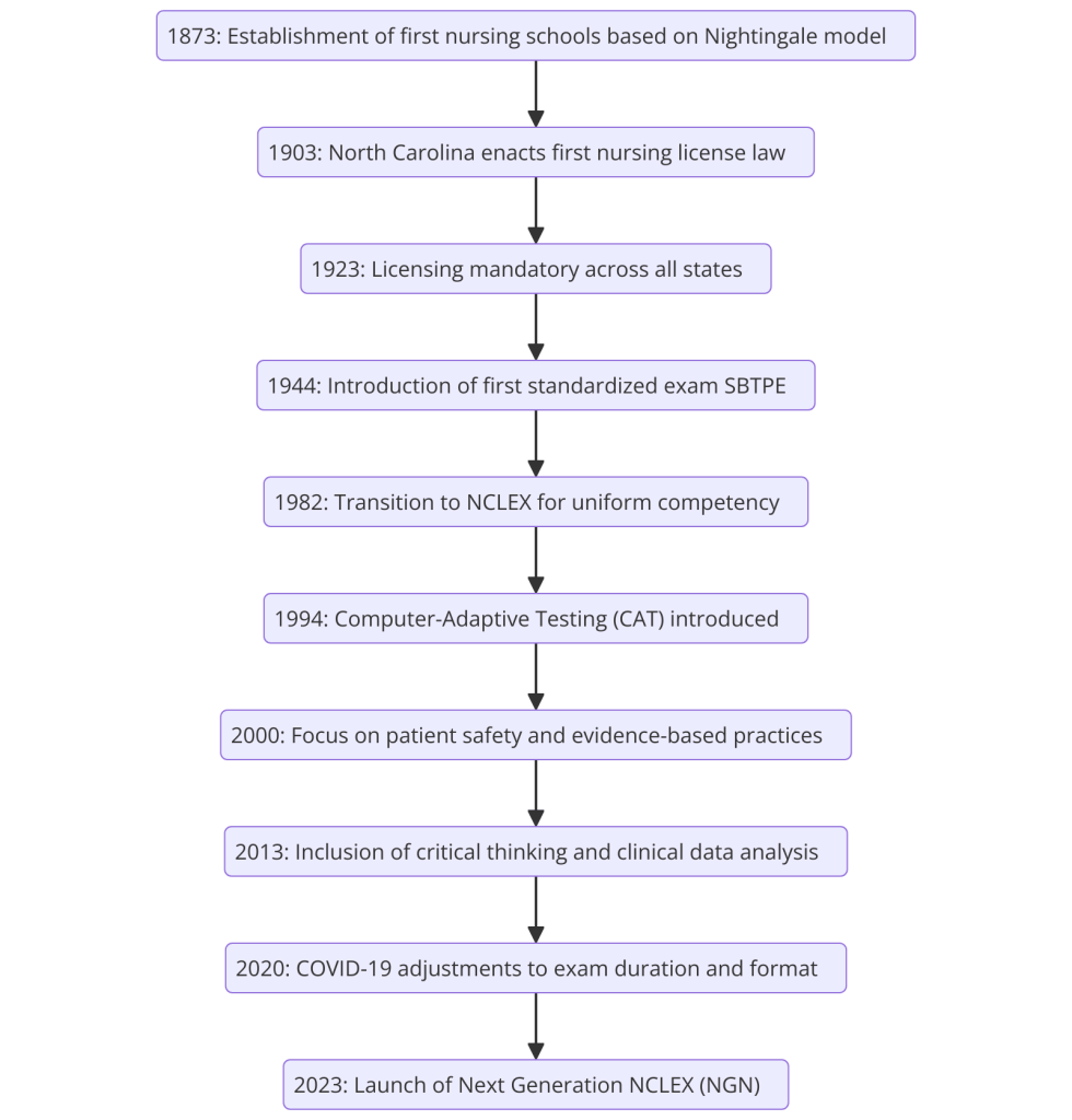 La evolución del examen para obtener la licencia de enfermería en los Estados Unidos refleja la transformación de la profesión y su compromiso con la seguridad y calidad en el cuidado de la salud. A continuación, se presenta una cronología histórica de este importante proceso: