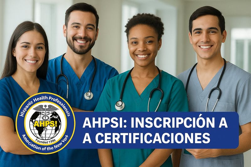 La Asociación Hispana de Profesionales de la Salud, Inc. NY (AHPSI) le da la bienvenida. A través de este formulario, podrá registrarse para nuestras certificaciones nacionales en el área de salud. Complete cada sección con sus datos actualizados para iniciar el proceso de inscripción.