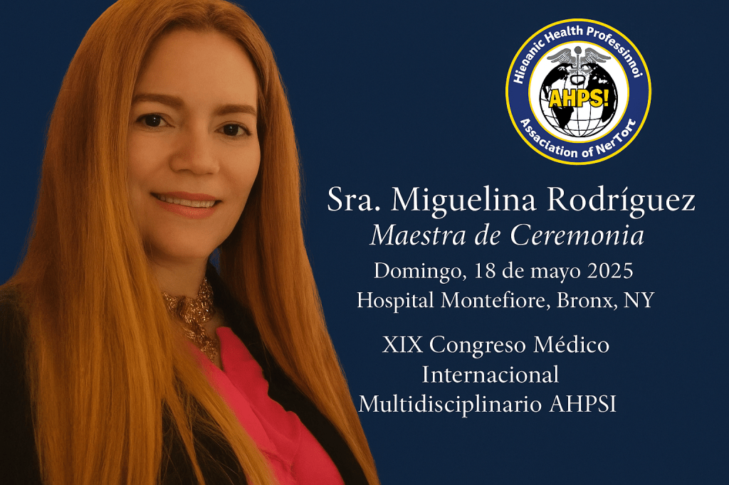 Nos enorgullece anunciar con gran emoción que la señora Miguelina Rodríguez,, una figura destacada en el mundo de la comunicación y el periodismo, será la Maestra de Ceremonia oficial del XIX Congreso Médico Internacional Multidisciplinario de la Asociación Hispana de Profesionales de la Salud, Inc. NY (AHPSI)**. Este prestigioso evento se llevará a cabo el **domingo 18 de mayo de 2025, en el emblemático **Hospital Montefiore, Bronx, New York, donde líderes de la salud, innovadores y héroes médicos se reunirán para compartir conocimientos y celebrar la excelencia.