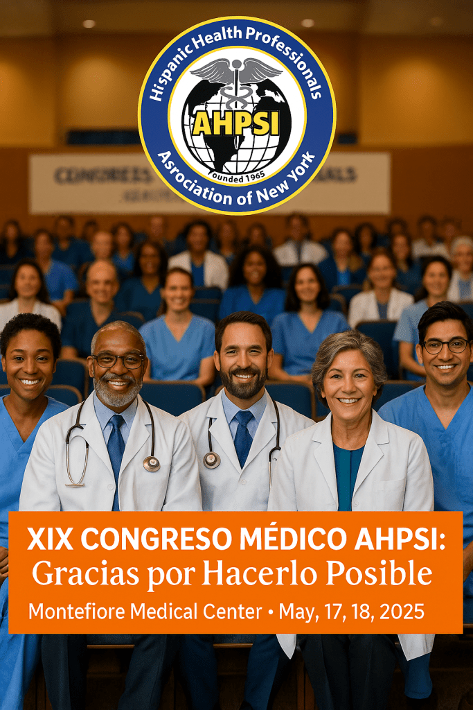 Bienvenidos a nuestro blog de la Asociación Hispana de Profesionales de la Salud fundada en el año 1989 en Nueva York, la cuál ofrece servicios a nuestros inmigrantes profesionales de la salud. Médicos, enfermeras, odontólogos, psicólogos, trabajadores sociales, veterinarios y estudiantes en el área de la salud residentes en la zona de Nueva York y New Jersey ,Pennsyvania, Conneticut, MA, entre otros estados. puede visitra nuestra pagina web :www.ahpsi.org