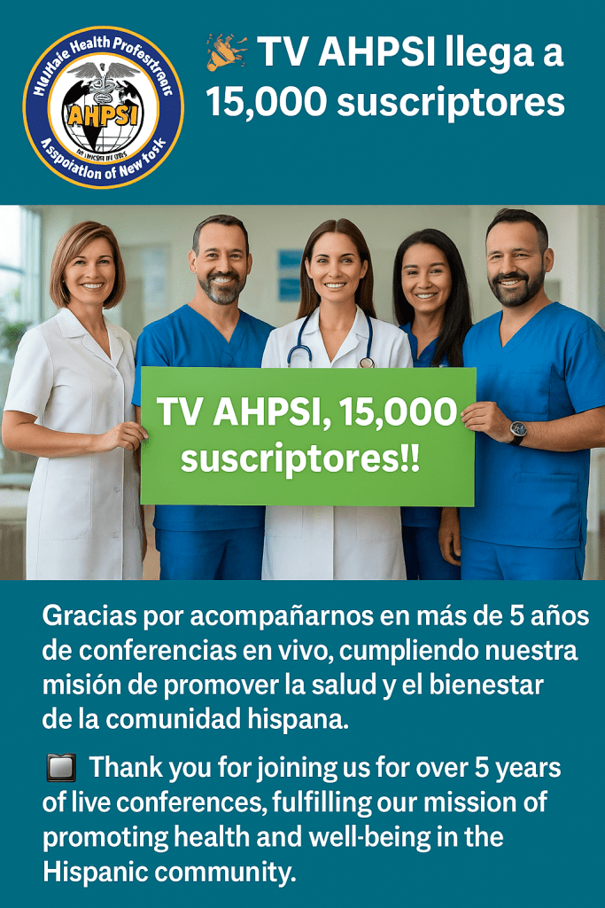 La Asociación Hispana de Profesionales de la Salud (AHPSI) se complace en recordarles nuestra agenda de próximos eventos:
