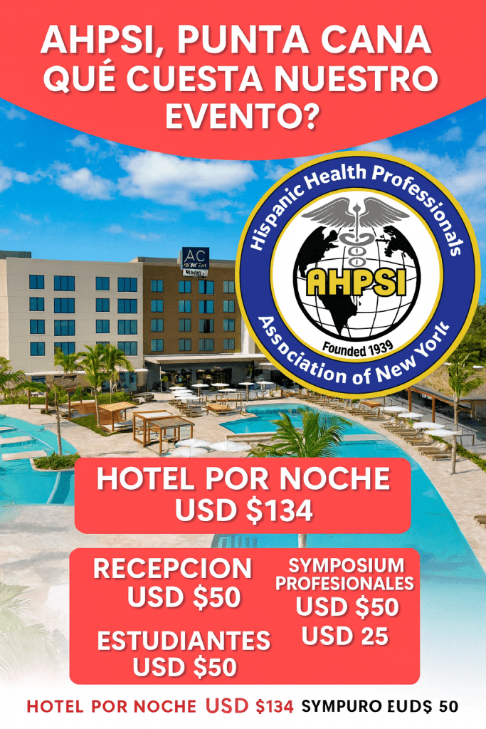 La Asociación Hispana de Profesionales de la Salud (AHPSI) tiene el honor de invitarles a participar en nuestro V Simposio Internacional: Avances en Salud Vascular, Inversión y Turismo Médico, a celebrarse en Punta Cana, República Dominicana, del 24 al 26 de octubre de 2025.