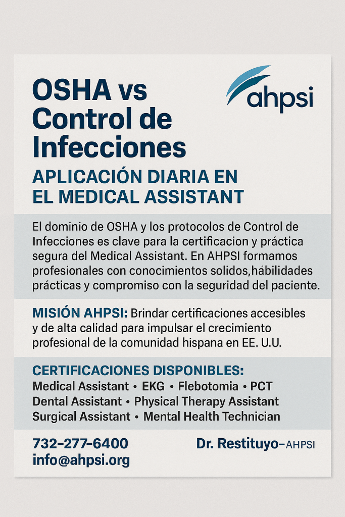 En la Hispanic Health Professionals Association, Inc. NY (AHPSI), nuestra misión es ofrecer programas de formación accesibles, actualizados y orientados a la excelencia, que preparen a los profesionales hispanos para integrarse exitosamente al sistema de salud de los Estados Unidos. Buscamos elevar el nivel de competencia, seguridad y profesionalismo, promoviendo oportunidades laborales reales y crecimiento profesional continuo.