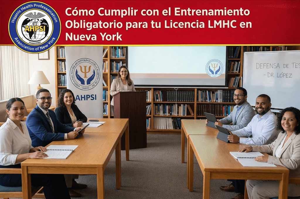 En AHPSI reafirmamos nuestro compromiso de orientar a psicólogos, consejeros y profesionales de la salud mental formados en el extranjero para que avancen de forma organizada hacia su licencia LMHC en New York. New York contempla evaluación de equivalencia para estudios fuera de EE. UU.; con planificación, documentación completa y el entrenamiento mandatorio correcto, este objetivo es alcanzable. (Office of the Professions)