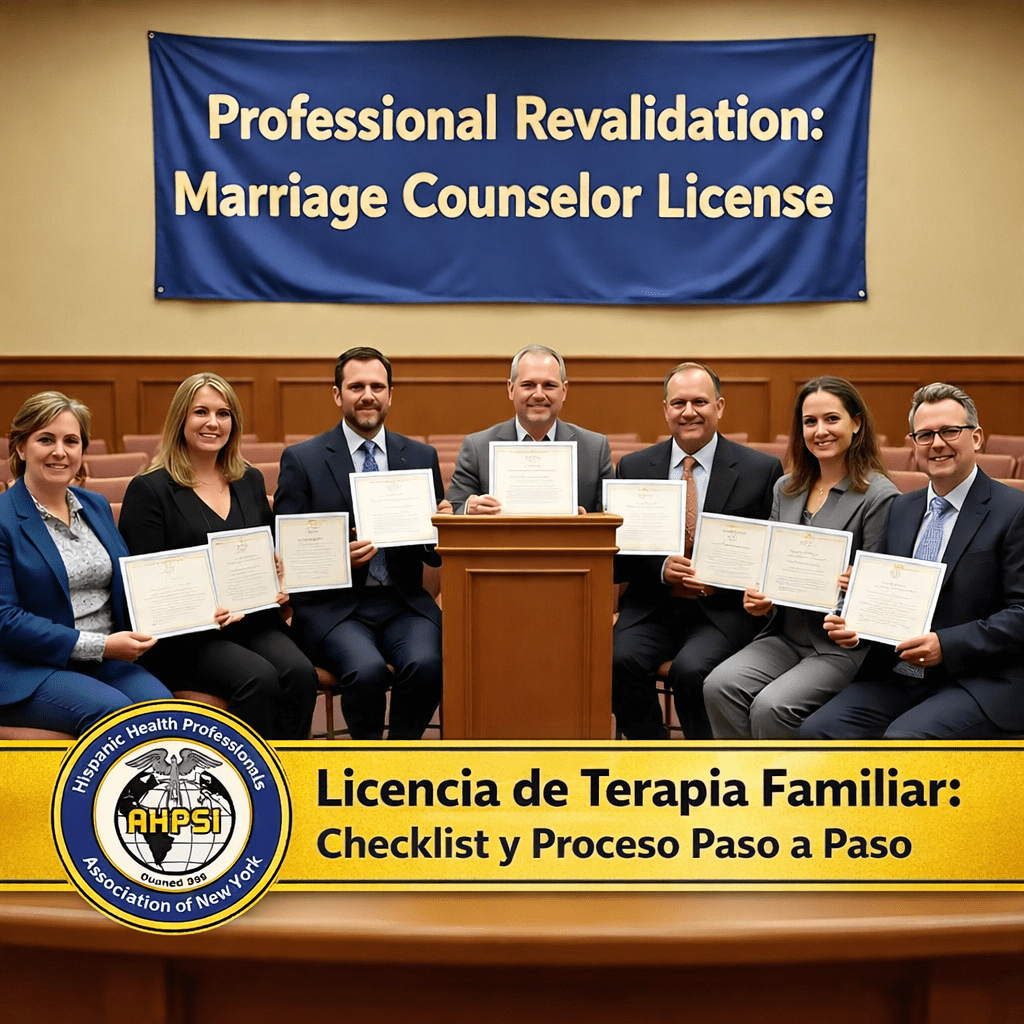 The Hispanic Health Professionals Association (AHPSI) provides this New York–focused overview to explain, step by step, what the Data Registration Form generally includes for Latin America–educated psychologists seeking authorization to sit for the required exam for Marriage and Family Therapist licensure (LMFT). This form is part of the official process with the New York State Education Department (NYSED), Office of the Professions, and is a key requirement before exam approval.