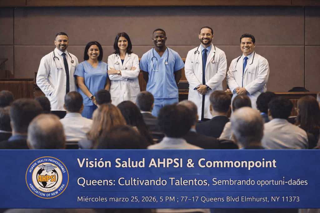 La Asociación Hispana de Profesionales de la Salud (AHPSI) tiene el honor de invitarle a nuestro evento especial para profesionales hispanos de la salud, que se celebrará el miércoles 25 de marzo de 2026, a las 5:00 PM, en Commonpoint, 77-17 Queens Boulevard, Elmhurst, NY 11373.