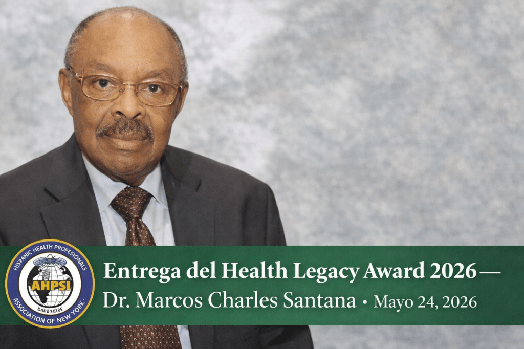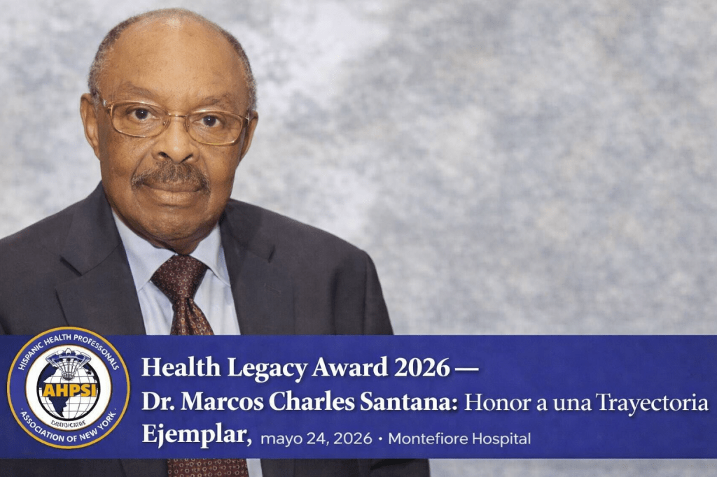 La Asociación Hispana de Profesionales de la Salud, Inc. (AHPSI) – New York tiene el alto honor de anunciar la X entrega del Dr. Marcos Charles Santana Health Legacy Award, acto que se llevará a cabo el domingo 24 de mayo de 2026, a la 1:00 p.m., en el Cherkasky Auditorium del Montefiore Medical Center, Bronx, New York, en el marco de la celebración de nuestro XX Congreso Médico Anual Internacional Multidisciplinario.