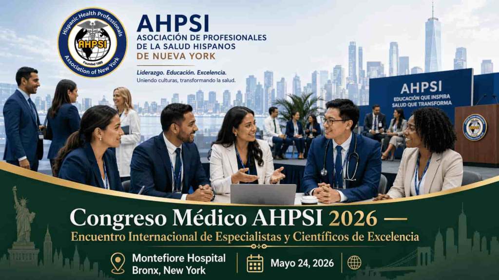 La Asociación Hispana de Profesionales de la Salud, Inc. (AHPSI), New York, se honra en invitarle al XX Annual International Multidisciplinary Medical Congress, a celebrarse el domingo 24 de mayo de 2026 en Montefiore Medical Center – Cherkasky Auditorium, 111 East 210th Street, Moses Division, Bronx, New York 10467. El evento reunirá a destacados especialistas, panelistas y científicos comprometidos con la actualización médica, la educación continua y el fortalecimiento profesional de nuestra comunidad de salud.