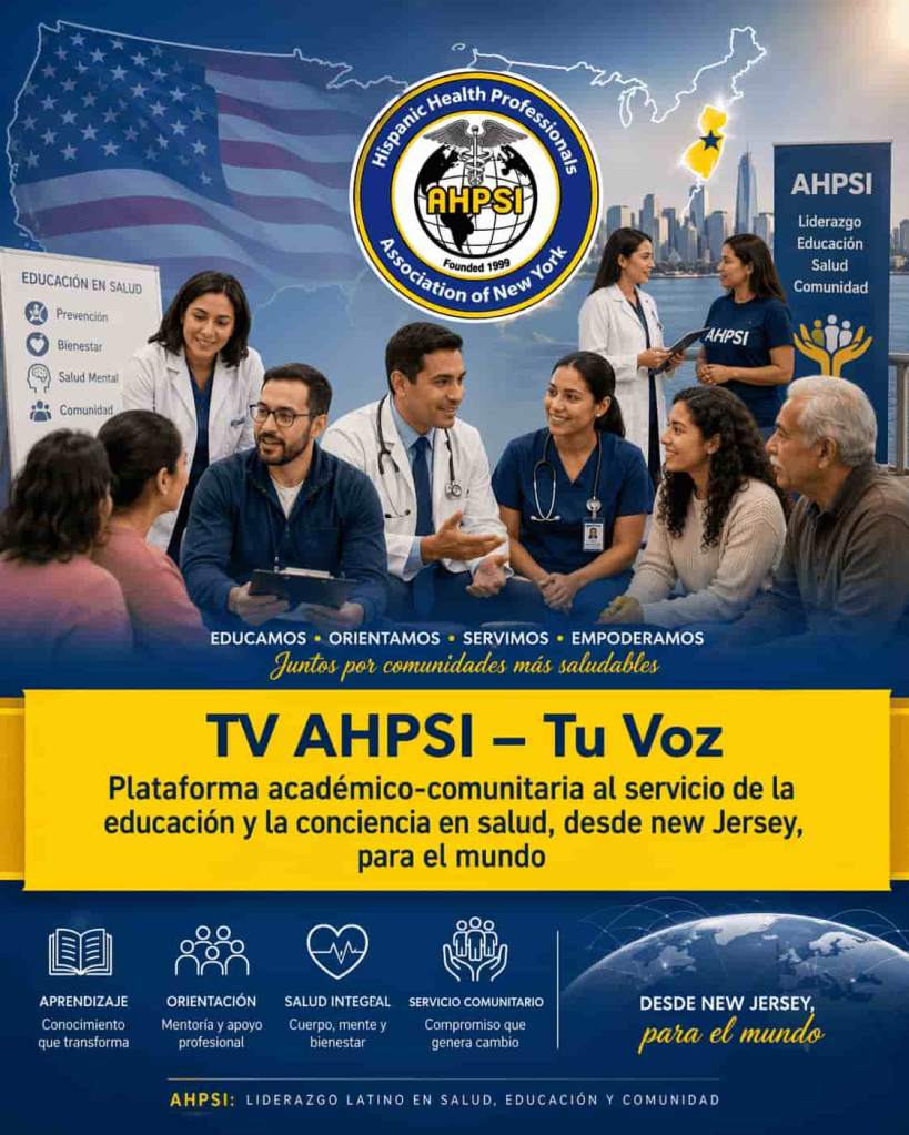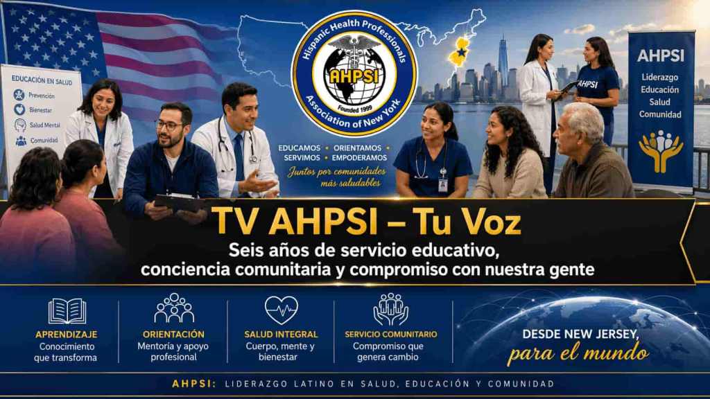 La Asociación Hispana de Profesionales de la Salud, Inc. (AHPSI), New York, expresa su más profunda gratitud por la trayectoria, permanencia e impacto de TV AHPSI – Tu Voz, una plataforma que nació durante la pandemia del Covid-19 y que, durante seis años, ha mantenido una salida continua e ininterrumpida al servicio de nuestra comunidad.