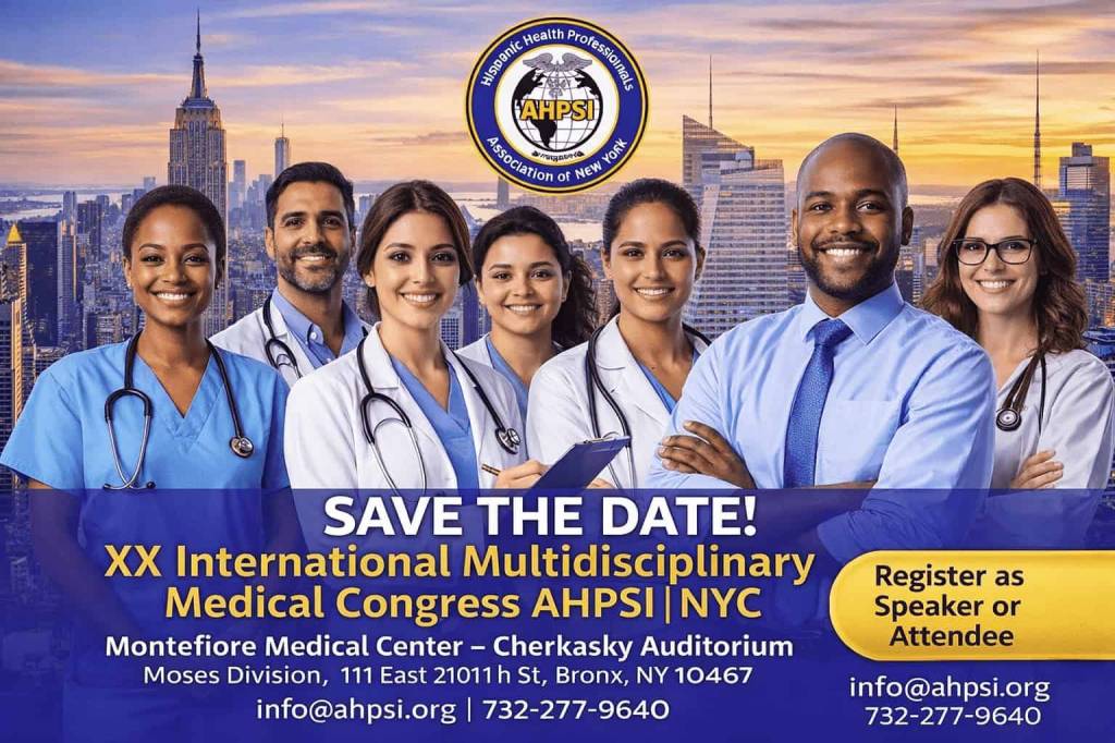 Le invitamos a registrar su ponencia para el XX Congreso Médico Internacional Multidisciplinario AHPSI | NYC, enfocado en el tema central “Abordaje Práctico de las Enfermedades Inmunológicas”, a celebrarse el domingo 24 de mayo de 2026 en Montefiore Medical Center – Cherkasky Auditorium, Bronx, NY. Esta es una oportunidad para aportar conocimiento útil y aplicable desde la clínica, la investigación y la experiencia comunitaria, destacando enfoques diagnósticos, terapéuticos y de manejo integral de condiciones inmunológicas que impactan múltiples especialidades. Además, AHPSI también aceptará ponencias relacionadas con cómo enfrentar los exámenes de licencia en Medicina, Enfermería y Psicología para el área de New York, como parte de nuestro compromiso con la formación, la orientación profesional y el avance académico de nuestra comunidad.