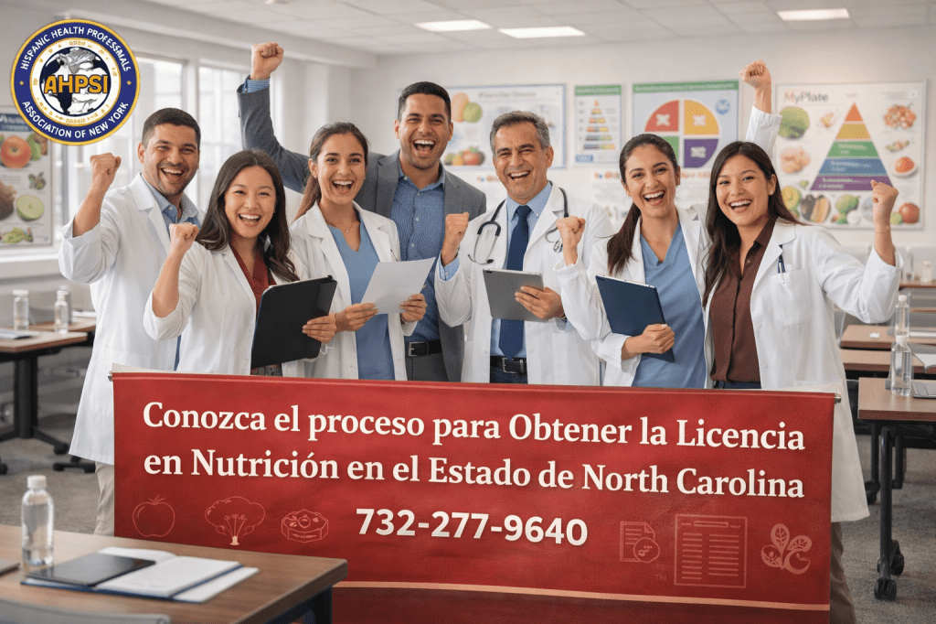 La Asociación Hispana de Profesionales de la Salud, Inc. (AHPSI), con más de 36 años orientando a profesionales inmigrantes en los Estados Unidos, pone a su disposición esta guía informativa sobre el proceso para obtener la licencia en el estado de North Carolina (NC) en el área de la nutrición.