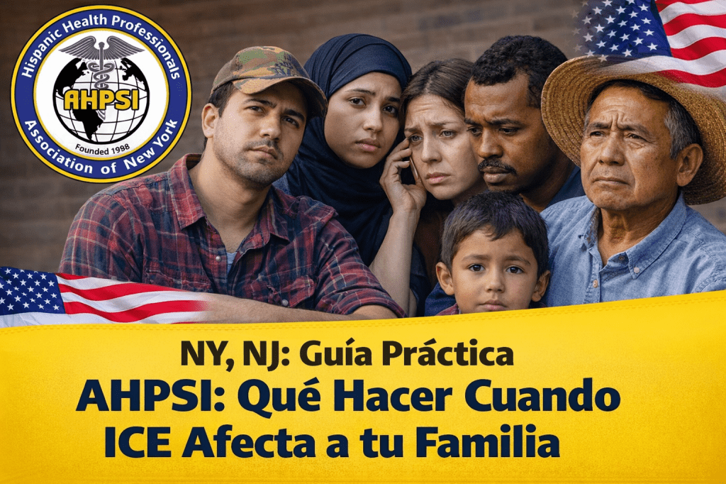 El Servicio de Inmigración y Control de Aduanas (ICE, por sus siglas en inglés) es una agencia federal de los Estados Unidos creada en 2003, como parte del Departamento de Seguridad Nacional (DHS), con el objetivo de hacer cumplir las leyes de inmigración y aduanas. Entre sus labores principales se encuentran la detención de personas en procesos migratorios, la investigación de violaciones a las leyes de inmigración y la ejecución de órdenes de deportación. En las últimas semanas, la Asociación Hispana de Profesionales de la Salud, Inc. NY (AHPSI) ha recibido una gran cantidad de llamadas de sus miembros y de la comunidad en general, especialmente en las áreas de New York y New Jersey, preocupados por la detención de familiares y seres queridos. Ante esta realidad, y fieles a nuestra misión de orientación y apoyo comunitario, hemos decidido publicar esta guía de orientación, con el fin de ofrecer información clara, recursos legales confiables y pasos prácticos para que las familias sepan qué hacer y dónde buscar ayuda en situaciones relacionadas con acciones de ICE.